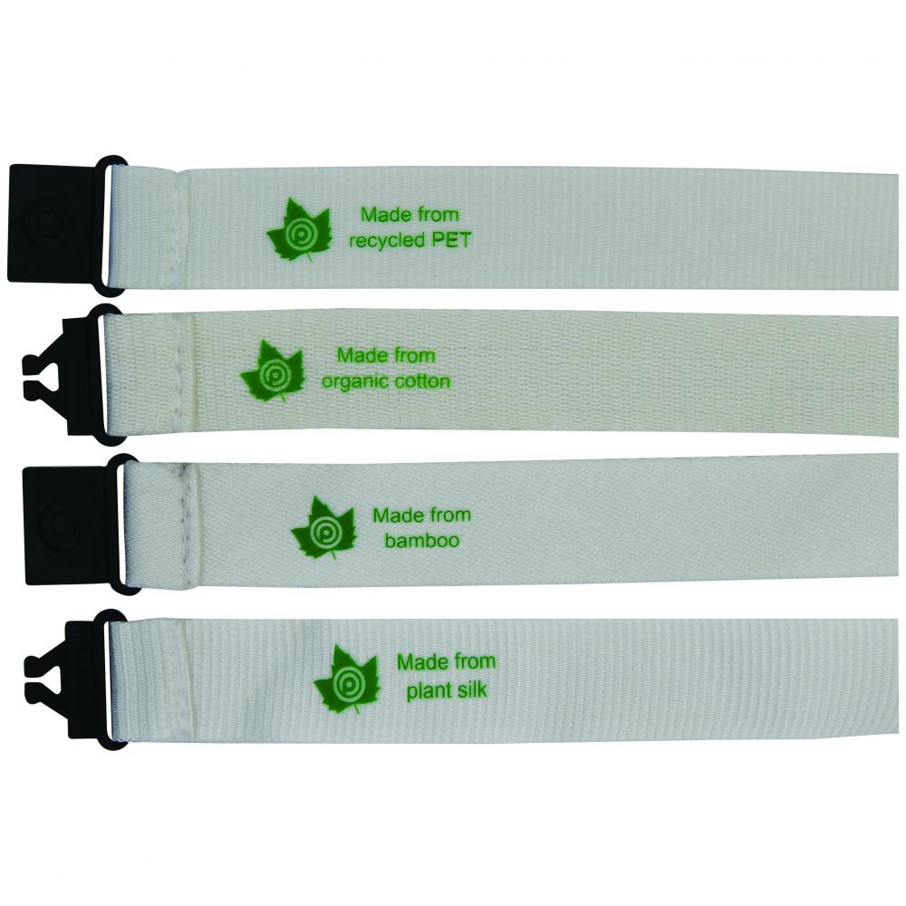 A sustainable UK-stocked 20mm bamboo lanyard available plain next-day or with a 1 colour screen print on 1 side in 5-8 working days.