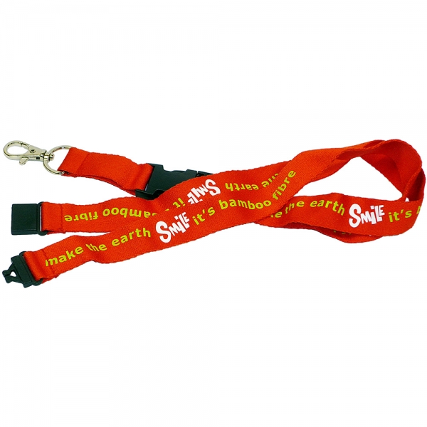 A soft but durable bamboo lanyard screen printed with up to 4 spot colours on 1 or both sides. This biodegradable material offers a more sustainable alternative to conventional plastic-based fabrics.