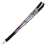 A UK-stocked 20mm flat recycled PET lanyard available plain next-day or with a 1 colour screen print on 1 side or a full colour transfer print on 1 side in 8-10 working days.