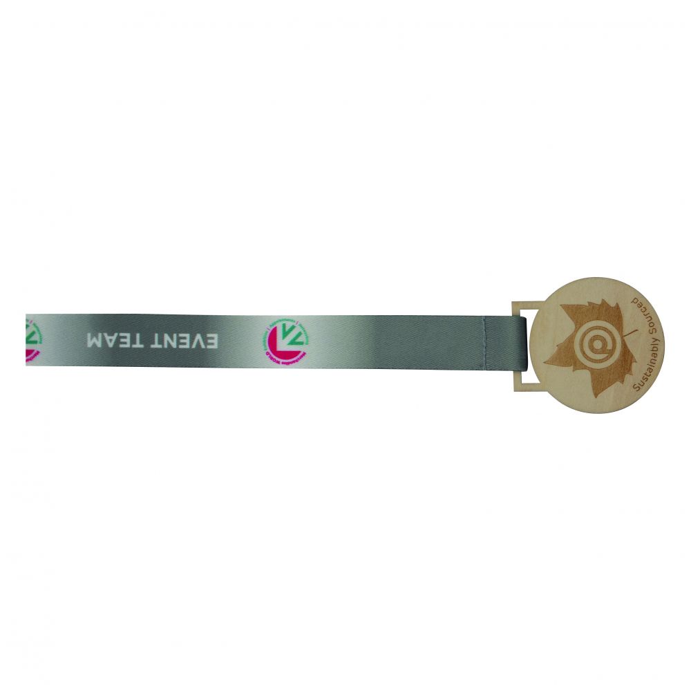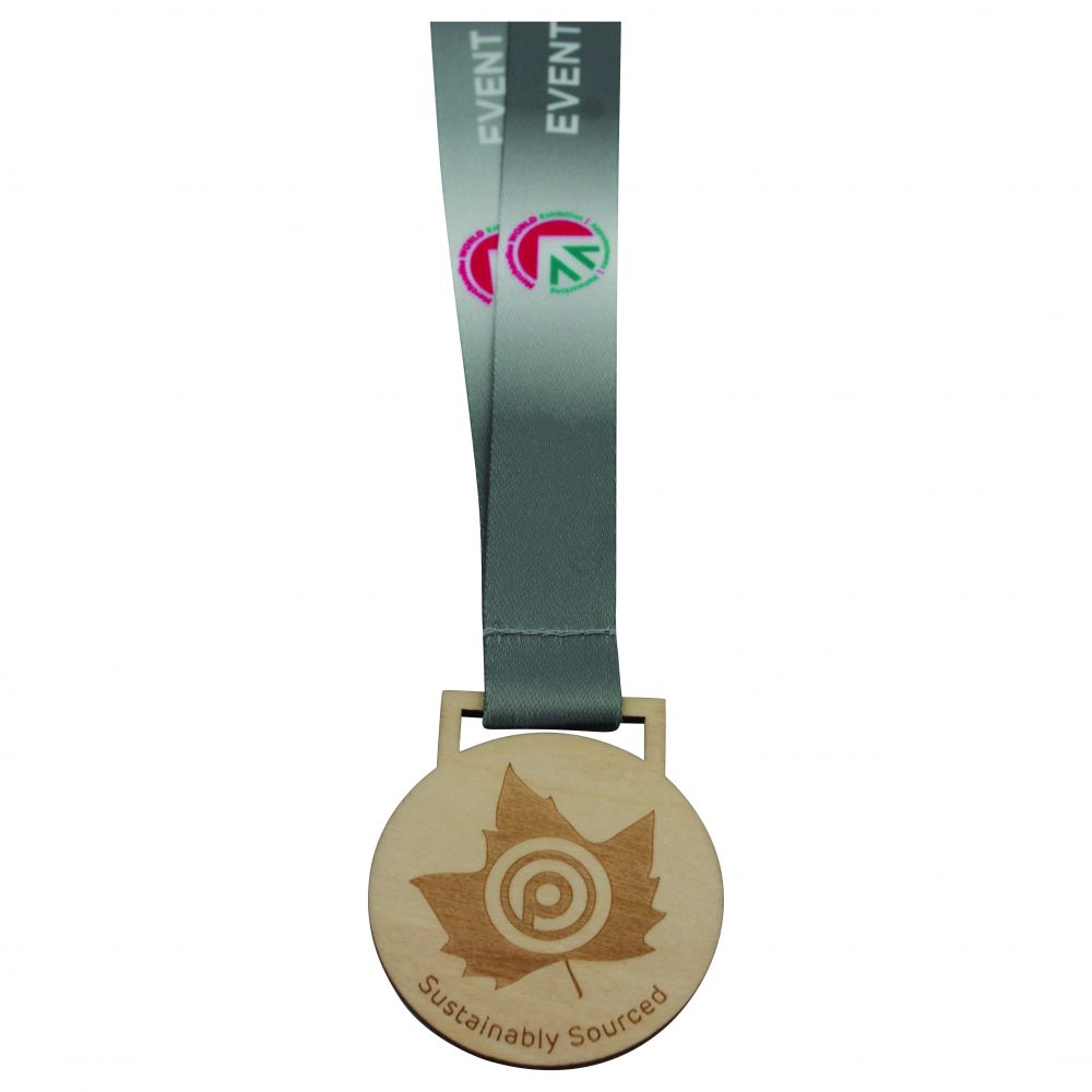 A fully bespoke wooden medal with an engraving or screen print on 1 side. Made from smooth and lightweight basswood to create a more sustainable product.