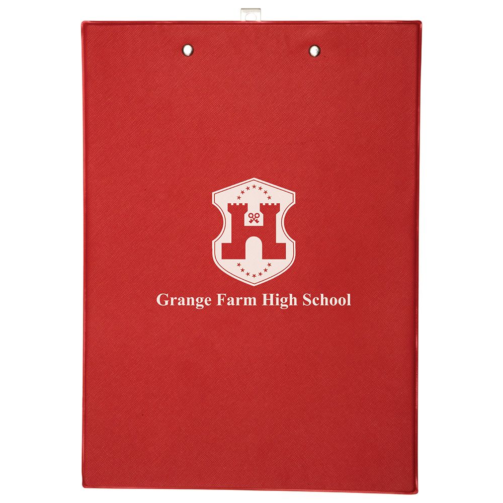 An A4 PVC clipboard available plain next-day or with a screen or full colour transfer print on the back in 8-10 working days. Ideal for holding loose papers while writing on the move.