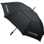 A UK-stocked 30-inch auto-open vented golf umbrella with a soft but durable polyester pongee canopy. This waterproof 8-panel canopy has vents that make the umbrella easier to use in windy conditions and a velcro closure. Available plain next-day or printed in 8-10 working days.