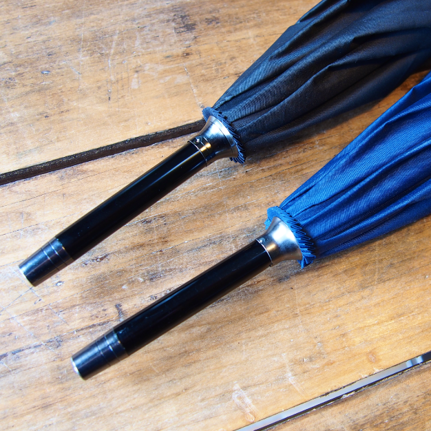 Standard black fittings include a rigid shaft and thick ribs made of strong fibreglass. The shaft has a long tip and comfortable rubber golf grip handle with white markings and a button for automatic opening.