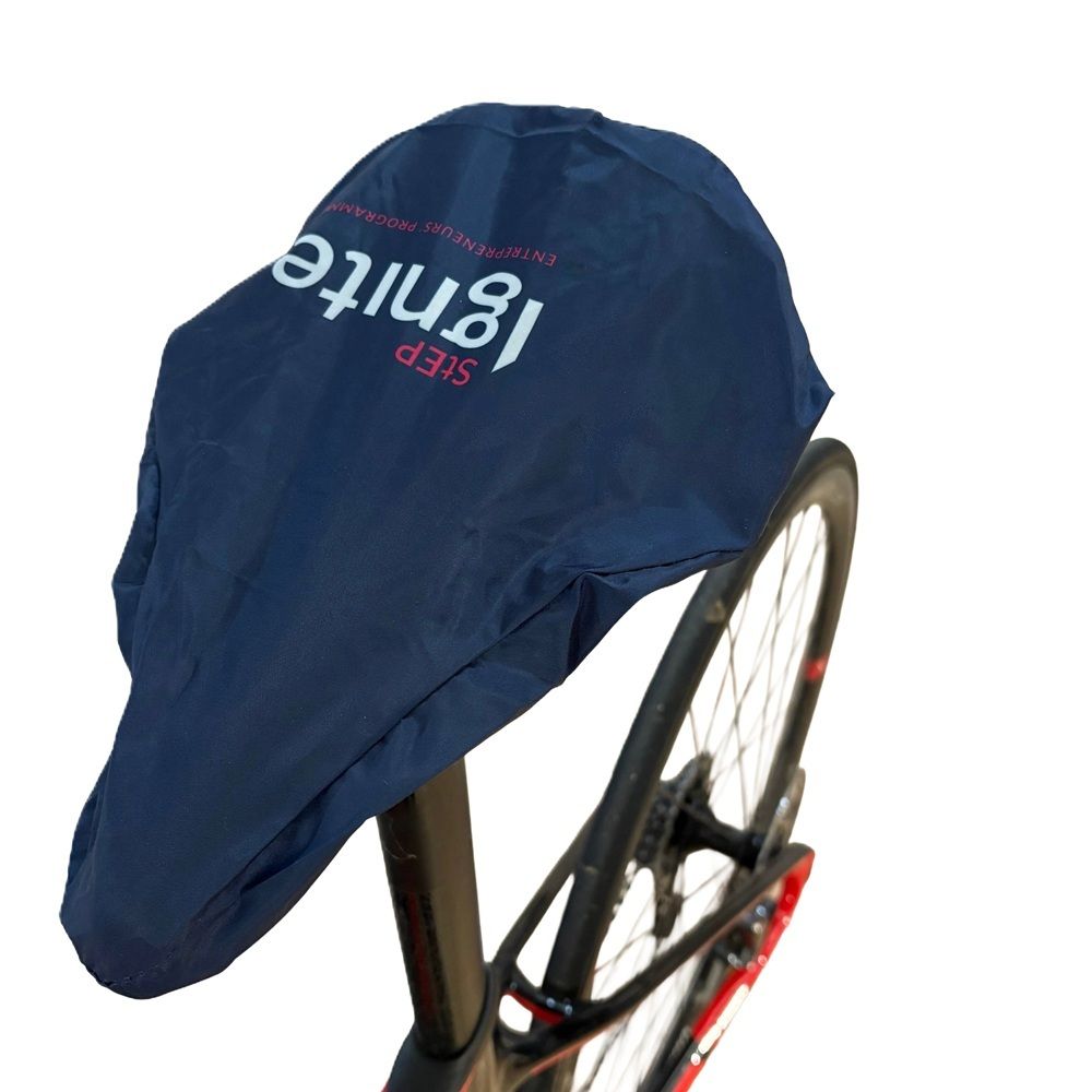A waterproof bike saddle cover with a full colour dye sublimation print on 1 side. Made from RPET with a PU waterproof backing. This lightweight, compact and practical product is perfect for protecting the seat from the elements when the bicycle is not in use. This includes when a bike is on a towbar mounted rack or turned upside down for repairs.