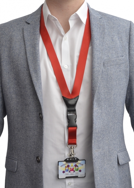 A top-quality fine weave polyester lanyard with a stamped design on 1 side. Artwork can also be stamped on the PU material just above the detachable buckle. This buckle allows the wearer to simply and swiftly detach and reattach the end of the lanyard.