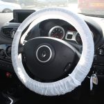 LPDE white steering wheel covers sized for passenger cars approximately 400mm in diameter.