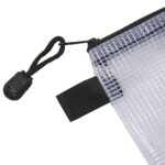 Standard black fittings include a hanging loop on 1 side and a secure zip closure with a zip pull.