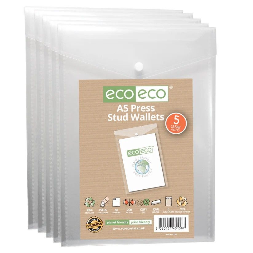 Eco-Eco A5 95% Recycled Clear Portrait Press Stud Wallet (UK Stock)