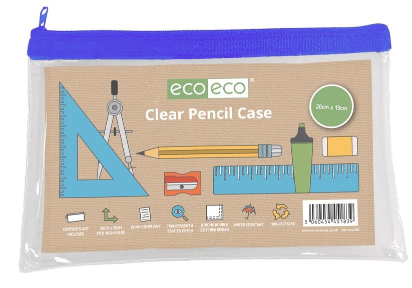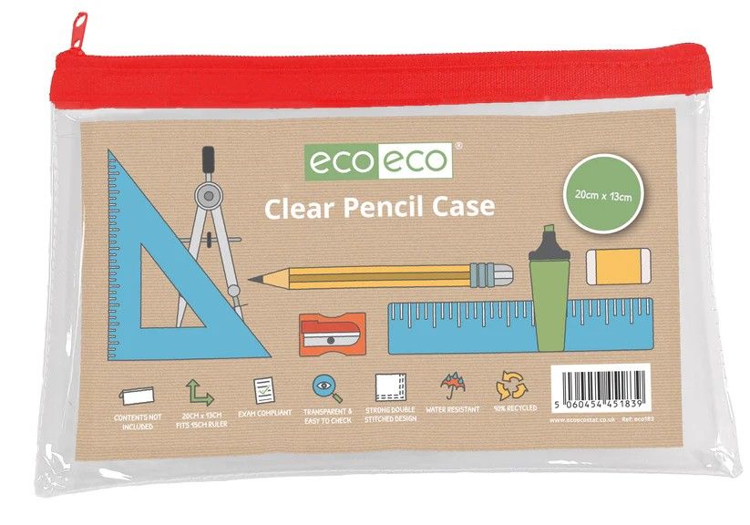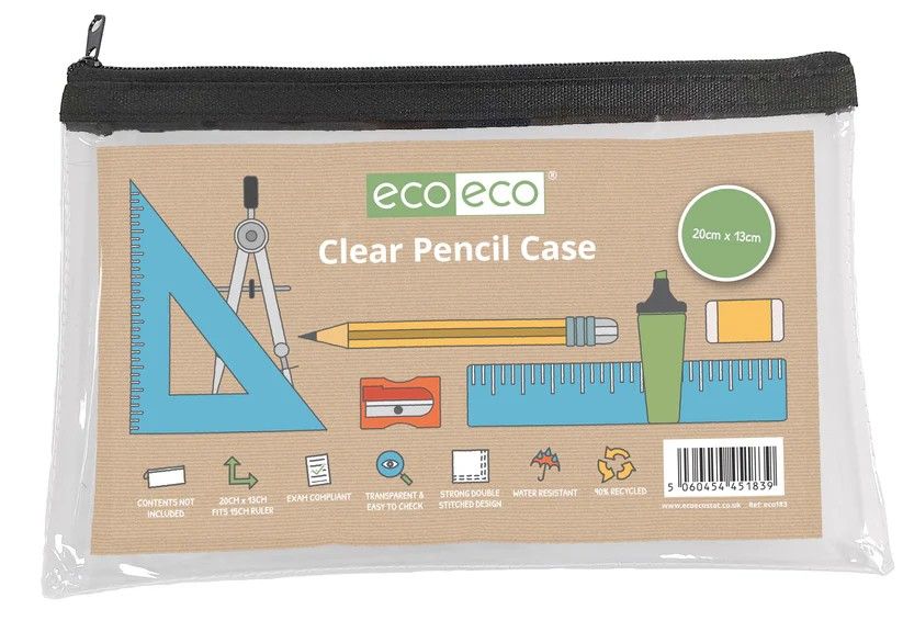 Eco-Eco Small 90% Recycled Clear Flat Pencil Case (UK Stock)