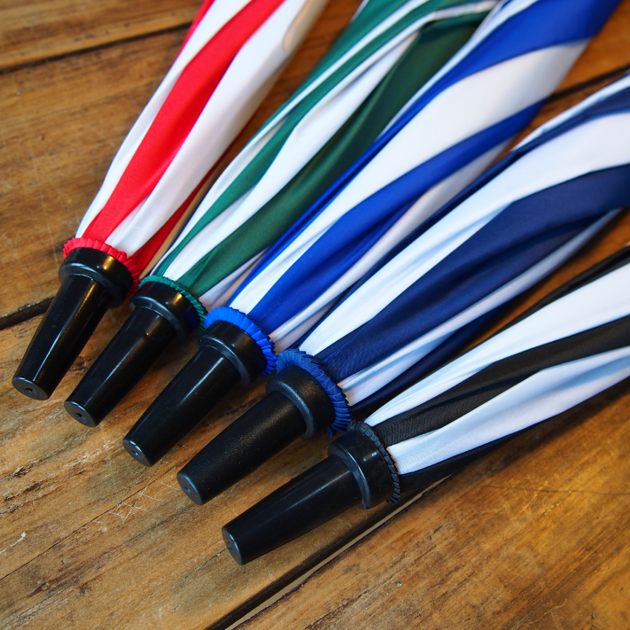 A robust UK-stocked 30-inch stormproof umbrella with a soft but durable polyester pongee canopy. This waterproof 8-panel canopy has a velcro closure. Available plain next-day or printed in 8-10 working days.
