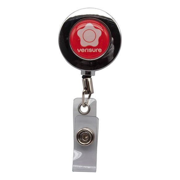 A metal pull reel with a full colour printed decal on 1 side. This item is perfect for holding a PVC wallet or rigid card holder. It can also help carry pre-punched plastic cards as well as keys and other small items.