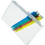 An exam-suitable UK-stocked clear PVC pencil case. Available plain next-day or screen printed on 1 or both sides in 8-10 working days. Durable 0.3mm-thick PVC is lightweight but tear-resistant and water-repellent.