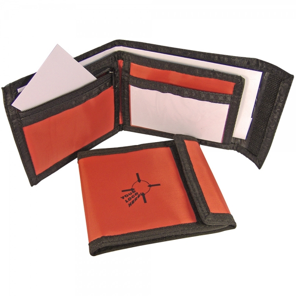 A UK-stocked folding ripper wallet available plain next-day or with a screen or full colour transfer print on the front in 8-10 working days. This durable wallet is smooth and lightweight while also tear-resistant and water-repellent.