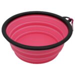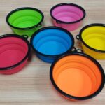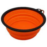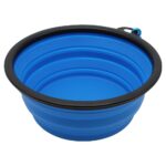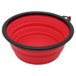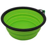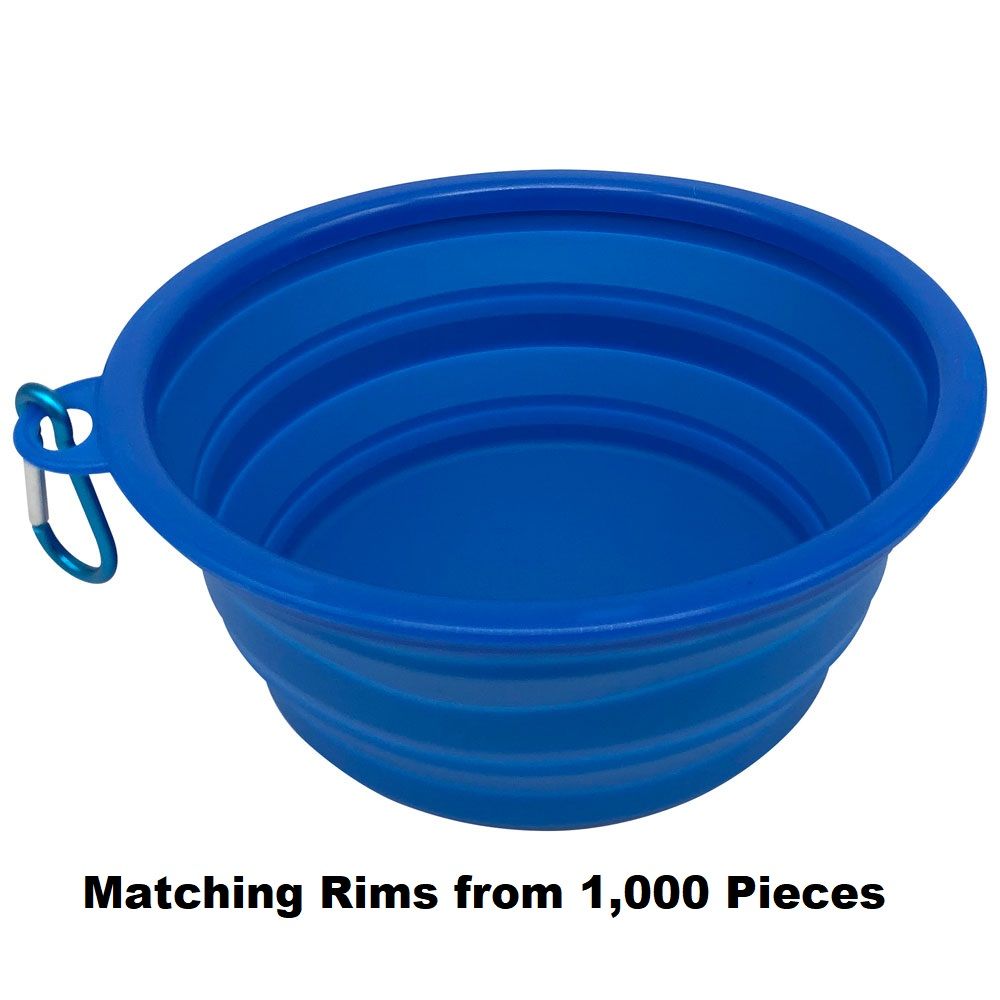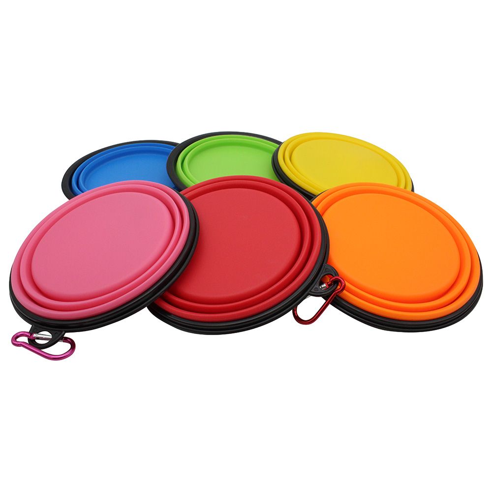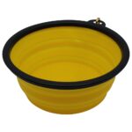 A super practical silicone pop-up dog bowl with a screen print on the bottom (outside). This compact product is simple to transport and allows owners to give their pets a drink no matter where they are.