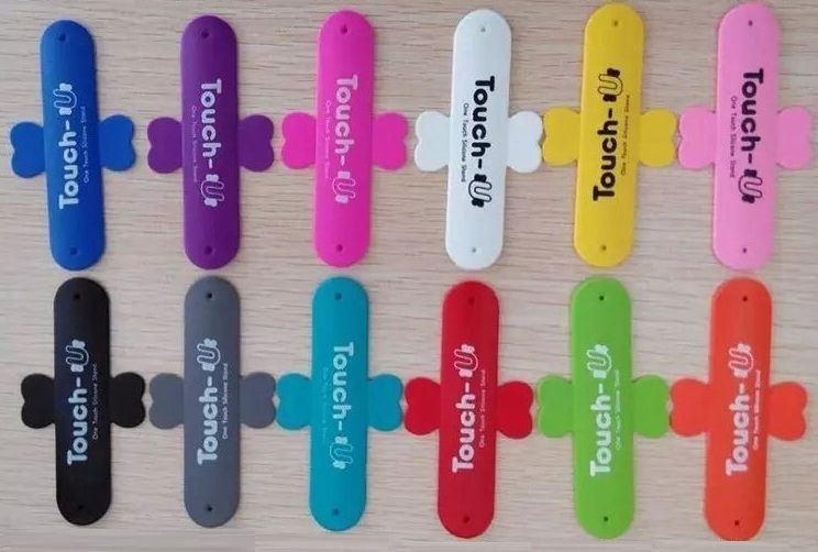 A silicone pop up phone stand screen printed with up to 3 spot colours. This super useful item sticks firmly to the back of a flat smartphone or case to allow the phone to stand. It offers a fantastic hands-free means of holding a phone (vertically or horizontally) while watching/reading something or making a video call.