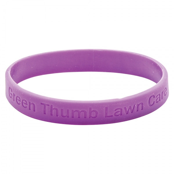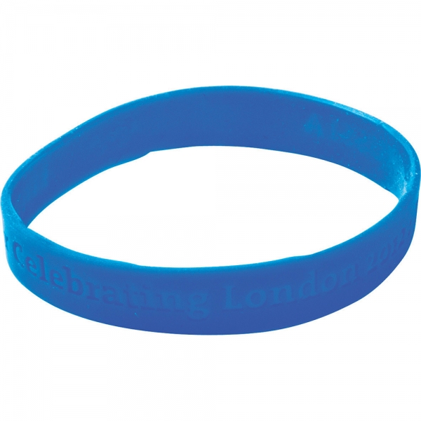 A smooth silicone wristband personalised on 1 side with a recessed logo. The sunken style of recessed artwork is well-suited for creating subtle but attractive designs.