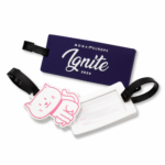 A fully bespoke soft PVC luggage tag moulded with up to 4 colours on the front. Supplied with a printed address card insert on the reverse as standard. This attractive and very useful item allows travellers to write down their details and securely strap the tag to their luggage in case it goes missing.