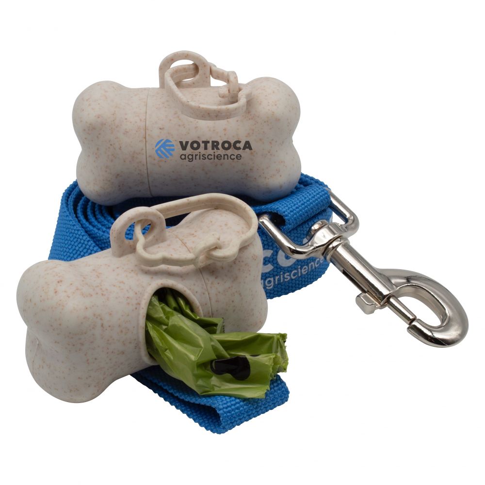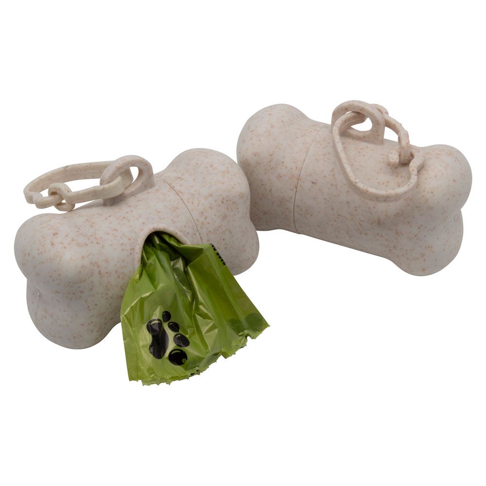 A convenient and eco-conscious wheat straw plastic dog poop bag dispenser personalised with a 1 colour screen print in 1 position. This very useful product provides pet owners with an ideal way to store dog poop bags while out and about with their furry friends.
